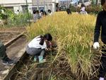 夏から育ててきた稲が大きくなったため、10月2日に5年生全員で稲刈りを行いました。