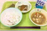 ごはん、牛乳、煮魚、揚げだいず、豚汁