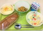 黒パン、牛乳、マカロニのクリーム煮、ごぼうソテー、いよかん