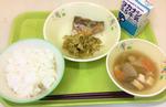 麦ごはん、牛乳、さばのみぞれあんかけ、けんちん汁、焼きのり