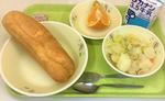 食パン、牛乳、イタリアンペースト、野菜のスープ煮、いよかん