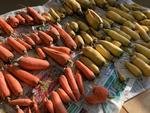 今日の給食でもチキンライスの具と野菜スープにカラフルなにんじんが