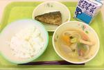 ごはん、牛乳、さばのあんかけ、ほうとう