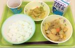 ごはん、牛乳、肉じゃが、からしじょうゆあえ、だいずとじゃこの炒り煮