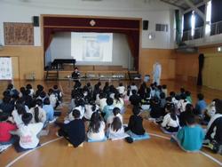 中休みに1・3・5年生対象の読み聞かせイベントがありました。ゆめつる応援隊のボランティアさんの企画です。大きな絵本の前に多くの子ども達が集まり、お話を楽しみました。