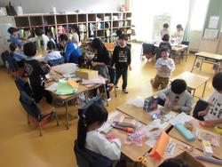 1年生活科では、秋の素材を使ったおもちゃ作りを行っています。作りたいもののグループに分かれ活動しています。また、金曜日には、収穫したさつまいもをふかして食しました。「おいしすぎて感想が言えない。」という子がいました。