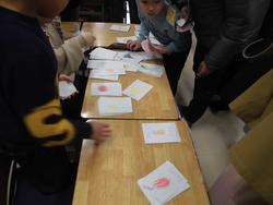 4年生は校舎の絵やお花でお祝いの気持ちを表しました。