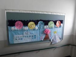 校舎内には、6年生の卒業に向けてお祝い飾りが貼られています。