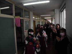 式の後、6年生が校舎内を回り、在校生とのお別れをしました。