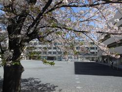 校庭の桜の花が満開の中、新6年生が登校し、新学期の準備をしました。