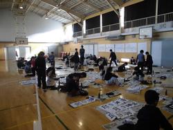 教室にいた人たちはすぐに机の下にもぐりました。校庭で遊んでいた人は、校庭の真ん中に集まって座りました。