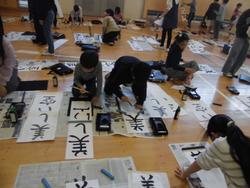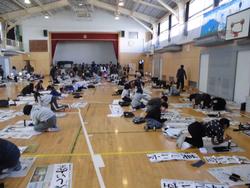 本校体育館は、エアコンがあるので、寒い思いをしないで書き初めに集中することができます。