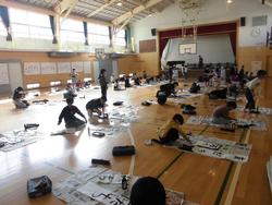 6年生は体育館で書き初めを行いました。