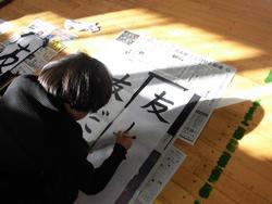 普段の半紙より長い紙に、練習の成果を発揮しました。