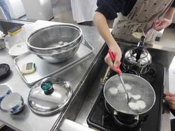 今日は家庭科室で、「お茶をいれたり、おかしを作ったりして、団らんを楽しもう」というめあてで、白玉団子を作り、お茶をいれてクラスの友達と団らんを楽しみました。