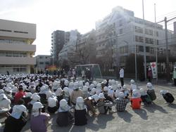 全員が校庭に整列して人数確認。安全に避難することができました。