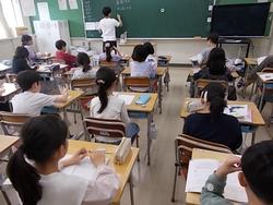 4年生の算数は大きな数です。一万より大きな数として億の単位が出てきます。0がいくつ必要なのか、子どもと先生が数えて確認をしていました。位取りをていねいに行わないと間違えが起きてしまいます。ます目を活用してノートに桁が大きい数を書いていました。
