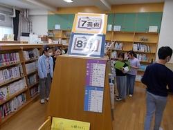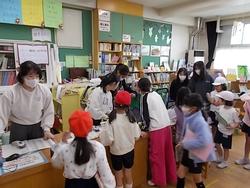 図書館の様子です。校内クイズの解答場所にいた5年生がスタンプをもちながら、戻されていた本を片付けていました。すごろくビンゴではやってきた低学年の子たちがサイコロを振って出た目のますに印をつけてもらってから、その番号の分類の本を一緒に探しに行きました。本は借りて読んでもよいので、カウンターでスタンプをもらっていました。「いつもは読まない本にチャレンジしてほしい」「分類の中から自分が興味ある本をさがすのもたのしんでもらおう」などと図書委員の子たちの思いが込められている読書週間です。「たくさん読ませよう」ではなく、「いろんな本に興味を持ってもらう」今回の読書週間は、都筑の子たちらしい知的で穏やかな取り組みです。