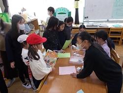 11月28日に第3回の授業研究会がありました。本年度は国語の授業研究会を行っています。3年生は1年生に進める本について話し合う活動を行いました。司会や記録、時計など役割を決めて話し合う良さを感じられていました。6年生は物語を読んで、内容を説明したり、考えたことを伝えあったりする「ブックディスカッション」を行いました。主人公の考えが変わった点について、叙述をもとに自分の考えを伝えていました。