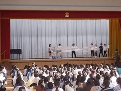 1月には学校給食の始まりにちなんで、給食週間があります。学校給食のよさを感じ、食を大切にする気持ちを高められるようします。給食員会が来週の給食週間の前に給食集会を開きました。小学生年代で成長に不可欠なカルシウムの大切さと多く含まれている食品についての説明がありました。