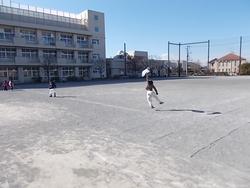 このところ日本列島が冬型の気圧配置のため、天候はよく、陽も出ているのですが関東地方には強い風が毎日のように吹いています。1年生が生活科でこの強い風であそぶことに取り組んでいました。大きめのビニールふくろを手に持って走ったり、空気を閉じ込めて大きくしたりしていました。あまりの風の強さに手から離れてしまったビニールが飛んで大変そうにしていましたが、凧のようにビニールふくろが風にたなびく楽しさを味わっていました。