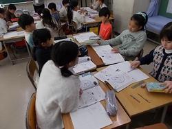 3年生が算数で重さについて学習していました。はじめは手作りの天秤で重さを比べたり、1円玉を使って枚数で重さを比べたりしていました。重さを比べることから、単位「g」を知り、はかりを使って重さを計ろうとしていました。筆箱やお道具箱など重さの見当をつけてから、重さをはかることで量感をつかむことにも取り組んでいました。