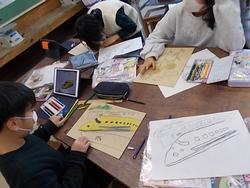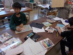 電動の糸のこぎりが図工室に設置されています。板などの木材を曲線でも切ることができます。板に絵をかいて、糸のこぎりで切り分けて、木製のパズルづくりに取り組んでいました。