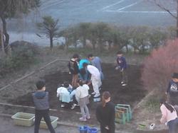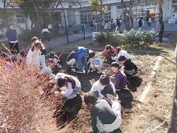 冬休みの前に1年生が春に向けて球根を植えていました。冬休みの間にカラスに意地悪をされてしまわないようにネットをかけて保管していました。何色のチューリップが咲くのか楽しみですね。