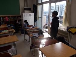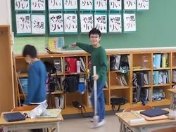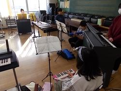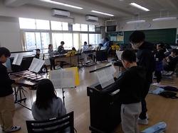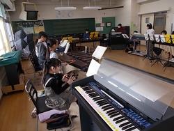 4年生の音楽です。ラ・クンパルシータというアルゼンチンタンゴの曲の演奏に取り組んでいます。鍵盤ハーモニカ・リコーダー・バスマスター・オルガン・木琴を使っています。全員がすべての楽器を経験するため、時間で次々と楽器を替えていきます。まだ始めたばかりのようで、周りを見る余裕はなさそうでした。