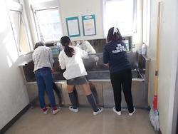 家庭の仕事は様々ありますが、そのうちの一つで清掃があります。床の汚れ、流し場のガラスの曇り、ロッカーの隅のほこり、窓の外側の汚れは、日々の中ではなかなか取り組むことは難しいです。6年生が家庭科できれいにする方法を学習した後、自分たちで工夫して学校の中できれいにしてみようと思うところにチャレンジしていました。
