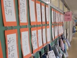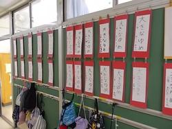 書初めです。12月に各学級で練習をしました。本番は冬休みに取り組んだものを展示しています。教室前に展示していますので、今週末23日までご覧になることができます。