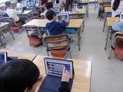 音楽の授業は専科の授業となっています。卒業式の前ですが、4年生が和楽器の琴の演奏に挑戦していました。はじく弦の番号を頼りに「さくら」の演奏を順番に行っていました。