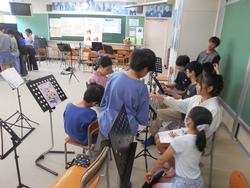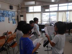 6年生がア・イ・ウと3つの旋律がある「ロックマイソウル」の曲を歌っていました。旋律を組み合わせや進み方を試して、響きあいを楽しんでいました。