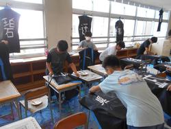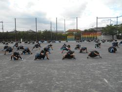 5・6年生は2学年での演技です。6年生は昨年の経験を活かして、踊りを先行して練習し、5年生に伝えました。入場や合図なども昨年度から工夫したものになっています。半被も実行委員を中心に選んだものを着て、思いの字を背中に書き、大漁旗も作成しました。5・6年生が新しい演技の形を示すことができるか。お楽しみに。