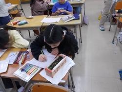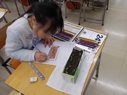 2年生が教室で育てているはつか大根の芽が出てきました。牛乳パックからたくさん出てきて、子どもたちもうれしそうです。生活科でカンタツカードをかいていました。