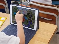 2年生の図工です。つつじやたんぽぽをはじめ、今の時期は校庭にたくさんの草花が咲いています。タブレットを持って校庭に咲いている花を撮影して、教室に帰ってから、草花たちとおしゃべりをしました。「あついなあ」「おなかすいたなあ」「ひらひら」「(2年生が)ずっと見ている」「わたしたくさんの人に(写真を)とられたよ」「はれててきもちいい」など草花の気持ちになって吹き出しにコメントを入れていました。