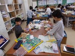 1年生が秋のものを使っておもちゃづくりに取り組んでいました。なんといっても主役はどんぐりです。山崎公園でたくさん拾ってきたどんぐりを飾りにしたり、こまにしたり、やじろべえにしたり、楽器にしたりしていました。秋の色づいた葉、枯れ枝、ススキの穂なども使っている子もいました。遠足のあきあそびも楽しんでいましたが、秋の季節を楽しんでいます。
