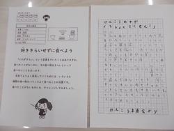 給食の前に学級で読まれているのが、栄養職員が作成するぱくぱく便りです。今日の内容は「好き嫌いせずに食べよう」元気でよりよく成長するためには、いろいろな種類の食べ物をバランスよくとることが大切だという内容でした。一緒に配られたのが、けんこう委員会が寒くなってきたからか、牛乳の残食が増えてきたのを減らそうと投げかけるお手紙でした。明日の給食には2年生が生活科で栽培したさつまいもが給食に出る予定です。小学校では給食で食育活動に取り組むことが多いです。