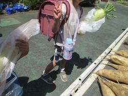 たくさん並んだだいこん。いつもお世話になっているまちの先生の畑で、収穫のお手伝いを2年生がしました。お手伝いのはずが、お土産で1人1本頂いてしまいました。いつもありがとうございます。このだいこんは、給食のおかずの材料にも使われます。まさに、地産地消。どんなおかずになるのでしょうか??