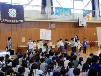 1、2年生が近隣の幼稚園や保育園のお友達を招いて、「わくわく にこにこ交流会」を行いました。