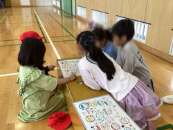 1年生とかえで幼稚園、どろんこ保育園、國學院幼稚園の3園の年長児との交流会がありました。今年度は夏休み明けから1クラス1園がペアになり、園や菅生緑地、学校で遊び、仲を深めてきました。この日は、「わくわくいっぱい美小へようこその会」と題して、一緒に学校探検をしたり、給食の白衣を着たりと、入学が楽しみになるような企画を実施しました。「もっと仲良くなれた。」「小学校楽しい。」という声が聞けました。