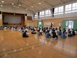 体育館でタブレット使う目的や注意点を学年全体で話した後に、教室で一人一台タブレットを配布しました。カバーにはキーボードがついており、操作に慣れている児童はどんどん打ち込んでいました。慣れていない児童も、教師の話を聞きながら、興味津々で操作をしていました。これから、ほかの学年も発達段階に応じて、タブレットを授業で活用していきます。