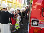 青葉消防署元石川出張所の消防士さんが3年生社会科の学習のために来てくださいました。消防士が来ている銀色の防火服やホースを実際に持たせてもらい、「私の弟ぐらいあるかも」とその重さにびっくりしていました。水消火器での消火訓練もしました。私たちの町を守ってくれる消防士の皆さんのすごさを感じました。