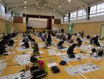 書き初めは平安時代の宮中で始まったとされ、それが江戸時代になり寺小屋の普及とともに庶民にまで広まったそうです。平安時代から続く伝統行事を体育館で4・6年生が行いました。明日は3・5年生が行い、1・2年生は教室で、フェルトペンで書き初めを行っています。廊下に掲示していますので、授業参加の時にご覧になってください。