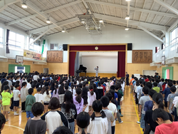 10月10日(金)前期終業式、10月14日(火)後期始業式がありました。6年、4年、3年、2年の代表児童が、前期のふりかえりと後期のめあてを発表しました。どの児童も学年に応じためあてを設定し、それを堂々と発表していました。髙木校長先生からは、全校遠足の姿が素晴らしかった話、学校地域コーディネーターの紹介がありました。校歌合唱のハーモニーも素晴らしく、新たな気持ちで後期をスタートしました。