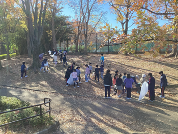 11月28日(金)の3・4時間目に小中合同クリーン活動を行いました。気持ちの良い晴天の下、3年生は美しが丘公園、4年生は美しが丘小学校周辺と美しが丘東小学校周辺に分かれて落ち葉やごみを拾いました。それぞれの場所で中学生や他校の同学年児童とグループ交流する様子が見られました。集まったごみ袋の数も多かったですが、地域間のつながりも見られた活動となりました。