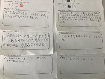 人権朝会で校長先生から「ありがとうの反対の言葉は、あたりまえ」という話を聞きました。 その週の道徳の学習で、教科書の話を読んで、今まであたりまえと思っていたけれど、よく考えたらそんなことはなく、 多くの人に支えてもらっていることに気がつくことができました。 『ありがとうを言うと、言った人も言われた人もいい気持ちになり、みんなが優しくなれる。』と考えました。 その後、個人面談で「昨日、ママいつもごはん作ってくれてありがとう。と言われたんですよ。 急にどうしてか聞くと、道徳の授業で、ありがとうって思ったら伝えたいって考えたから、と言っていました。」 とお話ししてくださった方がいました。 道徳で考えたことをやってみようと、実践した姿に感心しました。 道徳の授業では、良いとは分かっているけれど、できないときもあるんだよね、だからこんな考えが大事と、学習しています。 その考えがみんなの心の中にちゃんと積み重なっていることが感じられてうれしかったです。