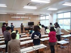 先週、3年生の体育に近隣の大学の学生6名が参加してくださり、タグラグビーの授業のサポートをしていただきました。子どもたちは普段とちがう楕円形のボールの形にとまどいながらも、学生の方々のアドバイスを受けながら、パスを中心に楽しく活動することができました。タグラグビーのよさは、一人ひとりの運動量が豊富で身体接触がなく、運動に苦手意識のある子どもも十分楽しめるところにあります。多くの子が運動の楽しさを味わうことができました。 |