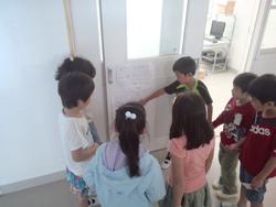 2年生が1年生をつれて、学校たんけんをしていました。2年生はこの日のために、学校の中を詳しく調べ、それをわかりやすく1年生に説明する練習を重ねてきました。事務室の前で説明をしているグループをパチリ。しっかりした説明が印象的でした。活動全体を通して、1年生に寄り添う2年生の姿がとても頼もしく思えました。育てることの本質は寄り添うことと、子どもから改めて教えてもらえたような気がします。 |