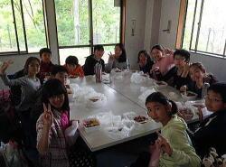 1日目は無事に終了しました。江戸村では汗をかくぐらい歩き回っていたので華厳の滝で滝の涼しさに子どもたちは「気待ち良い。」と喜んでいました。ホテルではナイフとフォークを上手に使いながら夕食をいただきました。夜のレクリエーション(にっこりナイトフェスティバル)は、それぞれのクラスが密かに練習を積み重ねてきたクラス対抗歌合戦、学年の歌、ダンス、ゲームなどで大盛り上がりでした。 |
